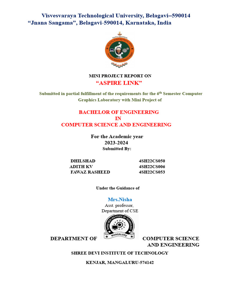 project work entitled “ASPIRE LINK” has been duly executed by us under the guidance of Nisha,