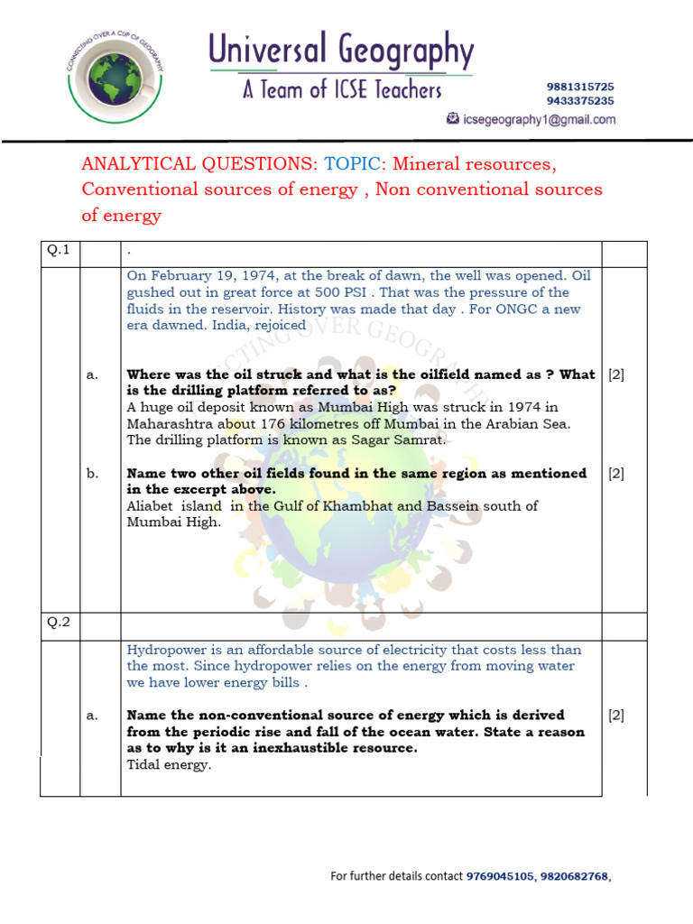 ANALYTICAL QUESTIONS: TOPIC: Mineral resources,