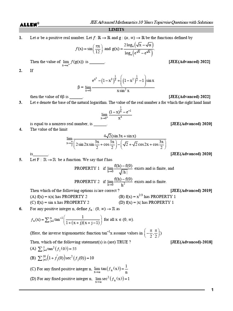JEE Advanced Mathematics 10 Years Topicwise Questions with Solutions