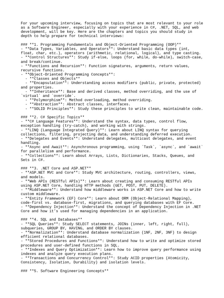 For your upcoming interview, focusing on topics that are most relevant to your role