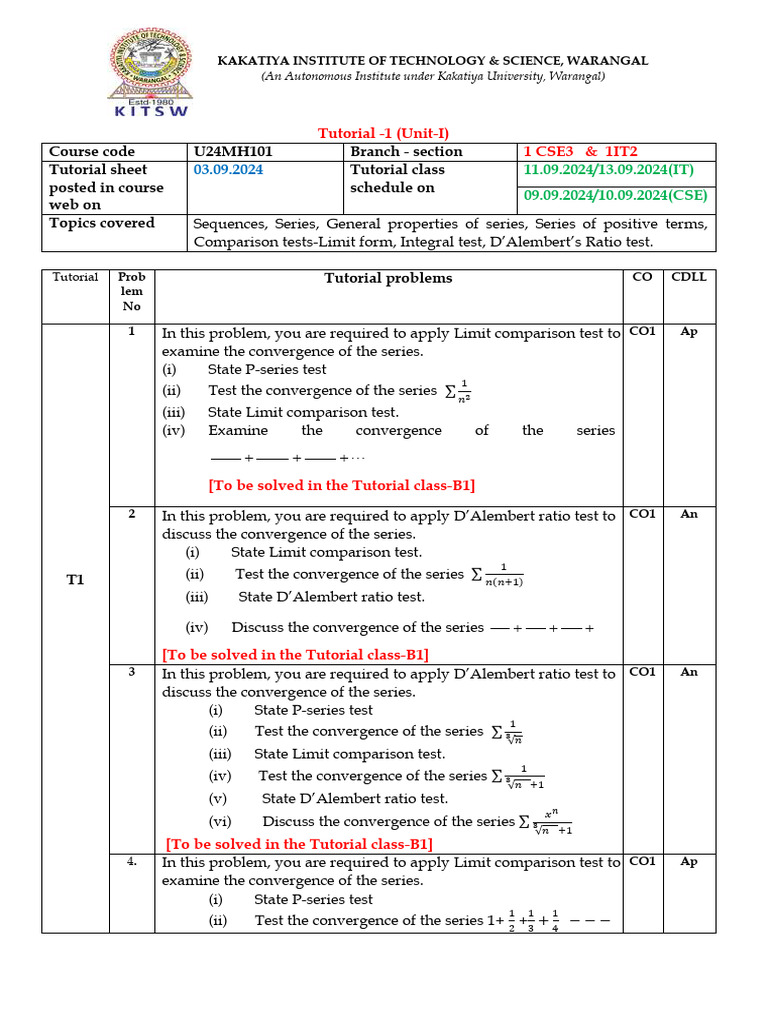 Tutorial sheet 03.09.2024 Tutorial class 11.09.2024/13.09.2024(IT)