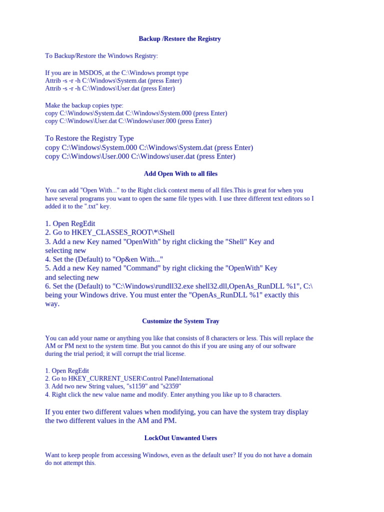 entry. Such entries are used throughout the Registry to prevent novice users from altering certain