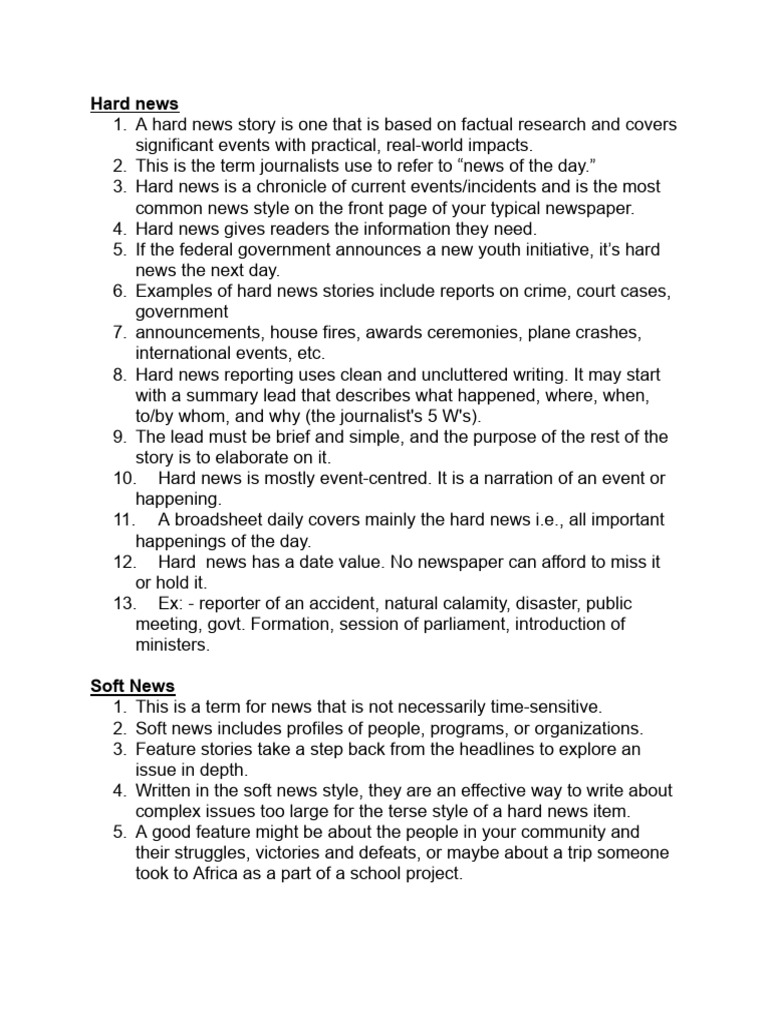 8. Hard news reporting uses clean and uncluttered writing. It may start