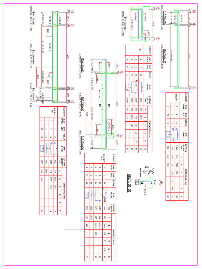 ELEMENT BAR BAR REBAR BAR CUTTING DIMENSIONS (mm)