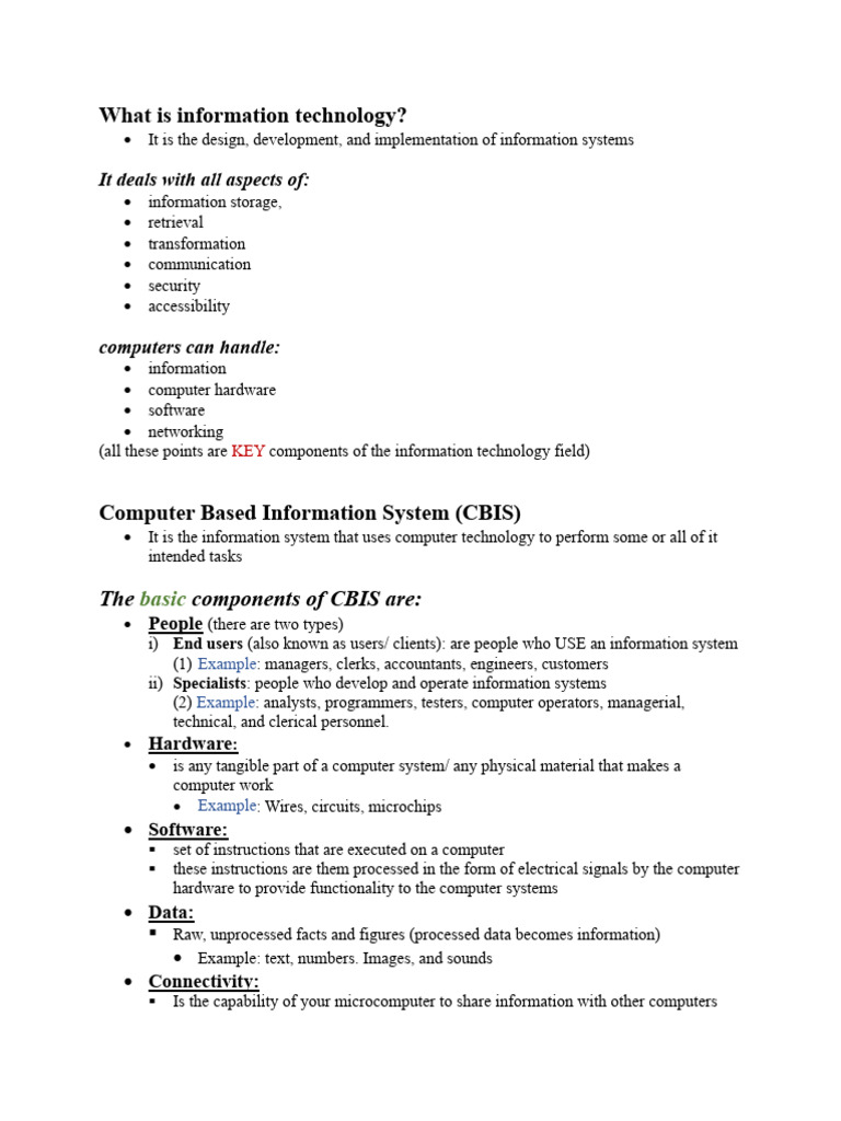 (all these points are KEY components of the information technology field)