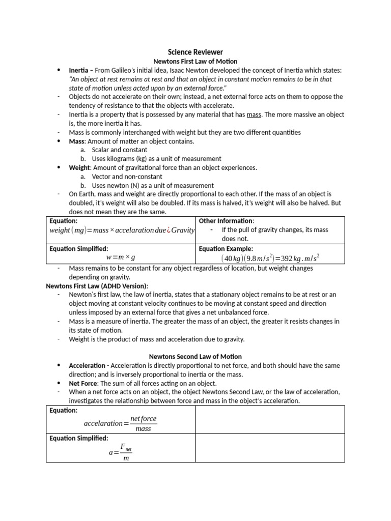 - Newton's first law, the law of inertia, states that a stationary object remains to be at rest or an