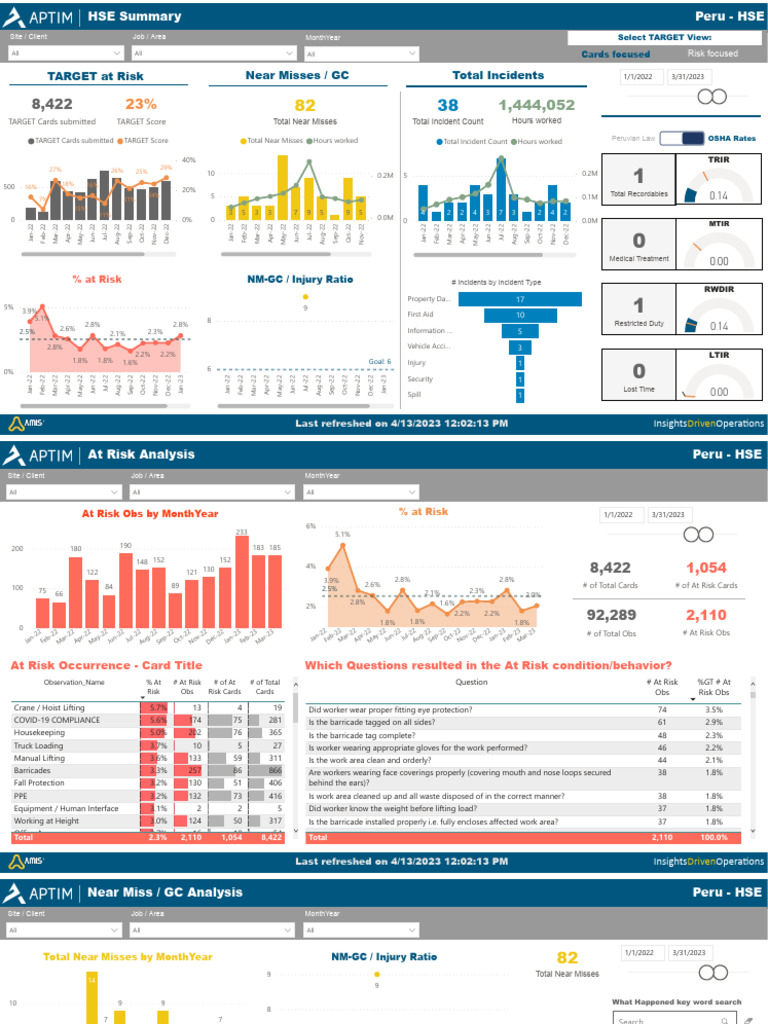 TARGET Cards submitted TARGET Score Total Near Misses Hours worked Total Incident Count Hours worked Peruvian Law OSHA Rates