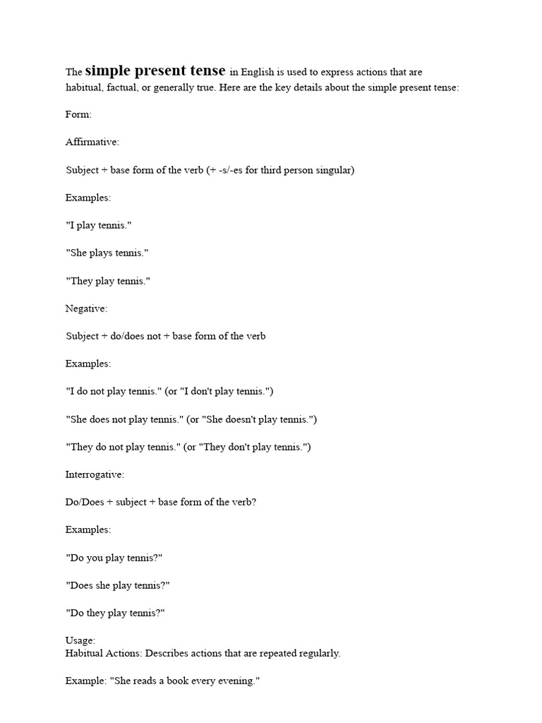 habitual, factual, or generally true. Here are the key details about the simple present tense: