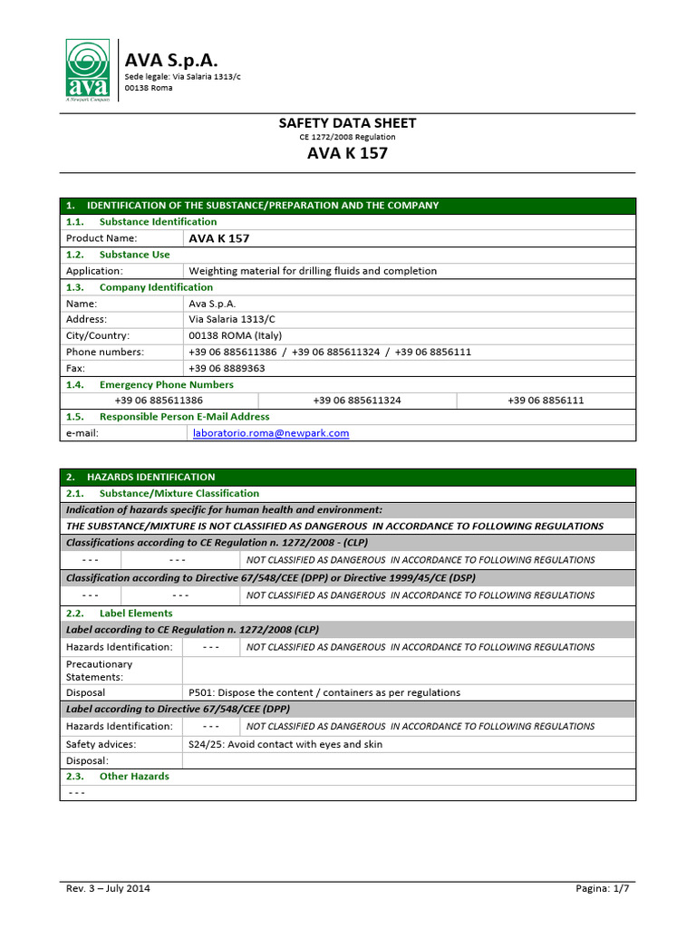 This safety data sheet has been completely updated in compliance to Regulation 453/2010/EU.