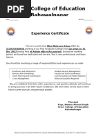 Experience Certificate