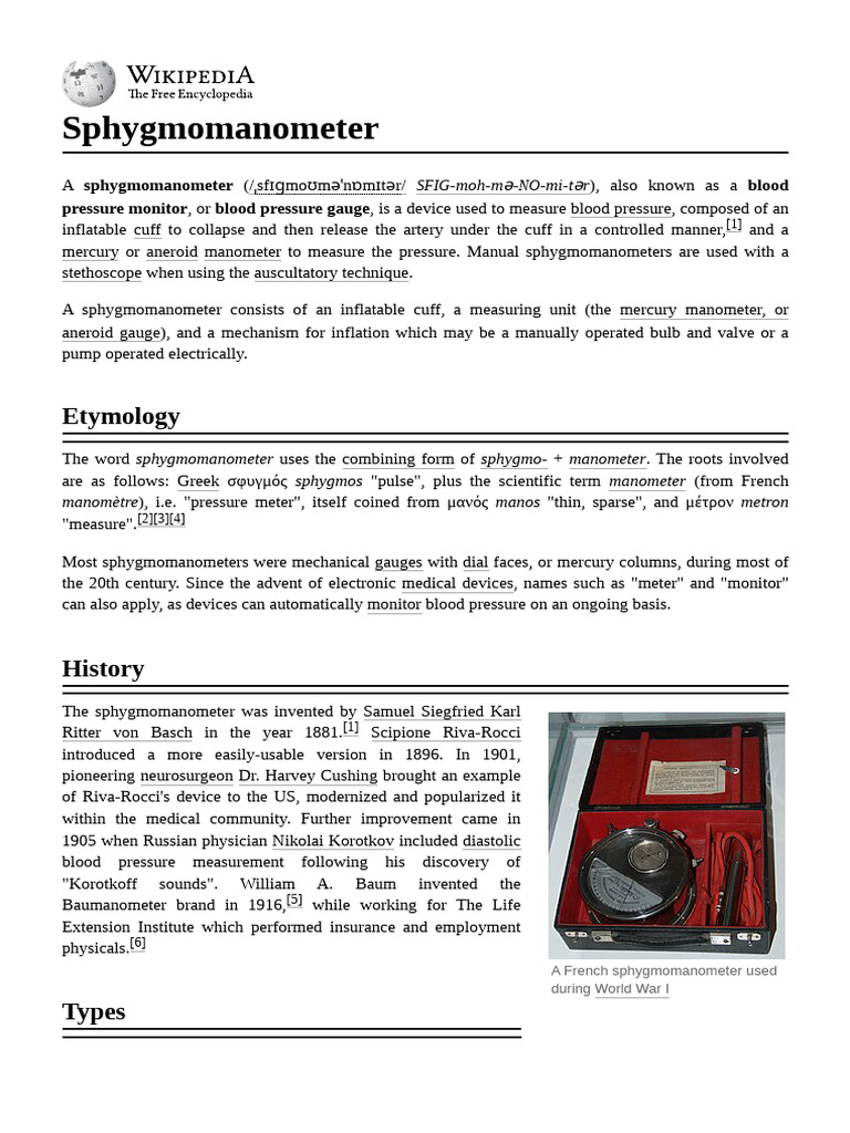 2. Harper D. "sphygmomanometer" (https://www.etymonline.com/?term=sphygmomanometer).