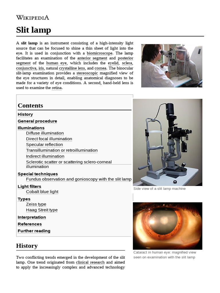 9. "From Lateral Illumination to Slit Lamp - An Outline of Medical History" (http://www.med-hist.