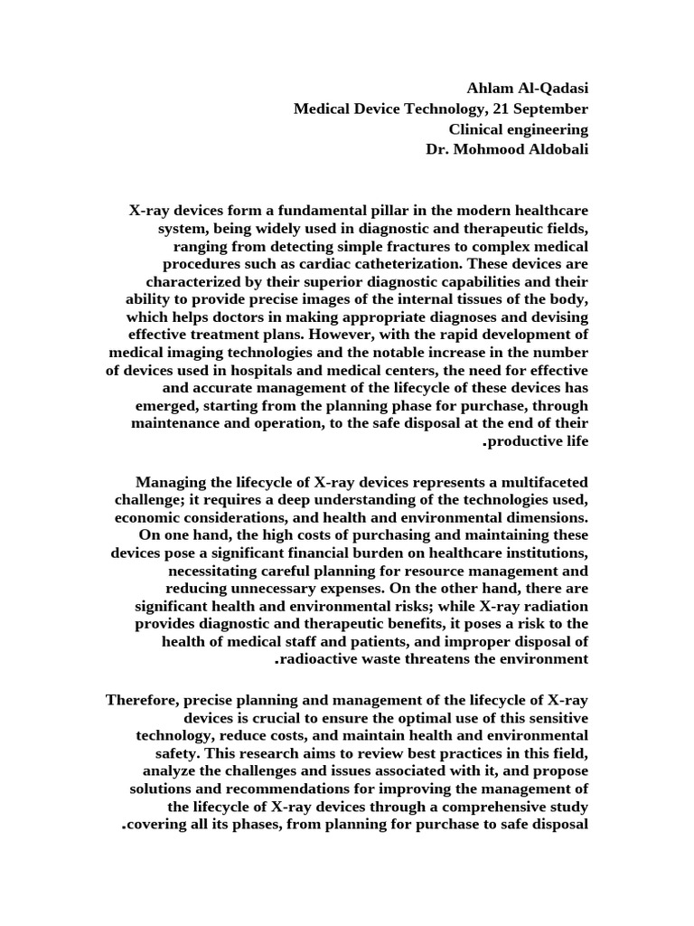 the lifecycle of X-ray devices through a comprehensive study