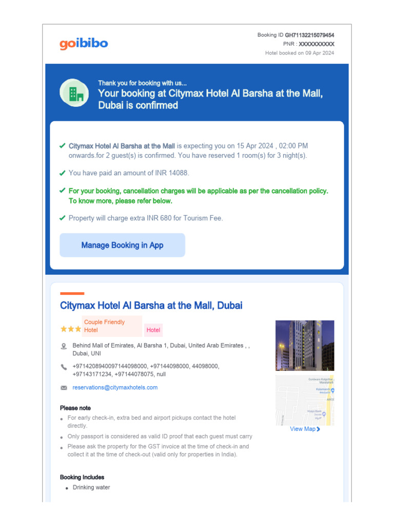 Hotel booked on 09 Apr 2024