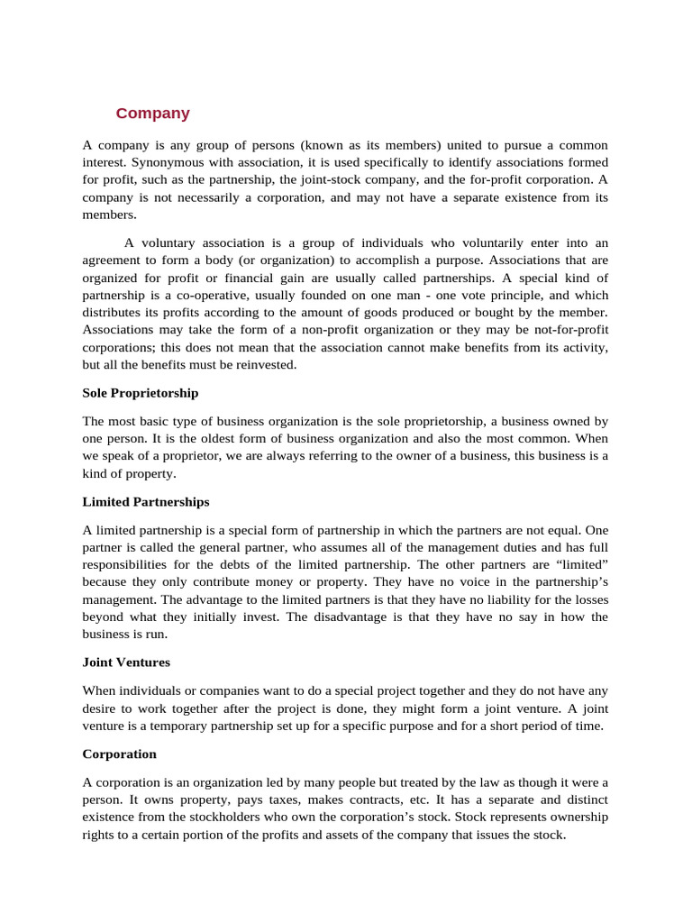 company is not necessarily a corporation, and may not have a separate existence from its