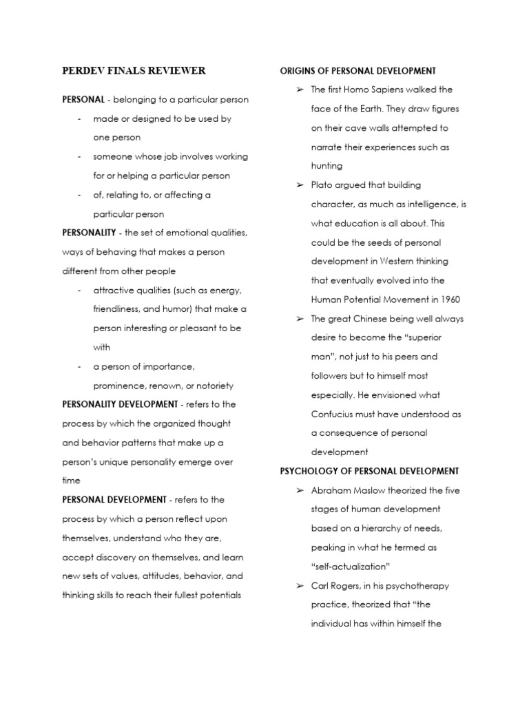 PERDEV FINALS REVIEWER ORIGINS OF PERSONAL DEVELOPMENT