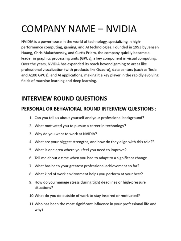 40.Why do you want to work at NVIDIA, and what excites you about our AI