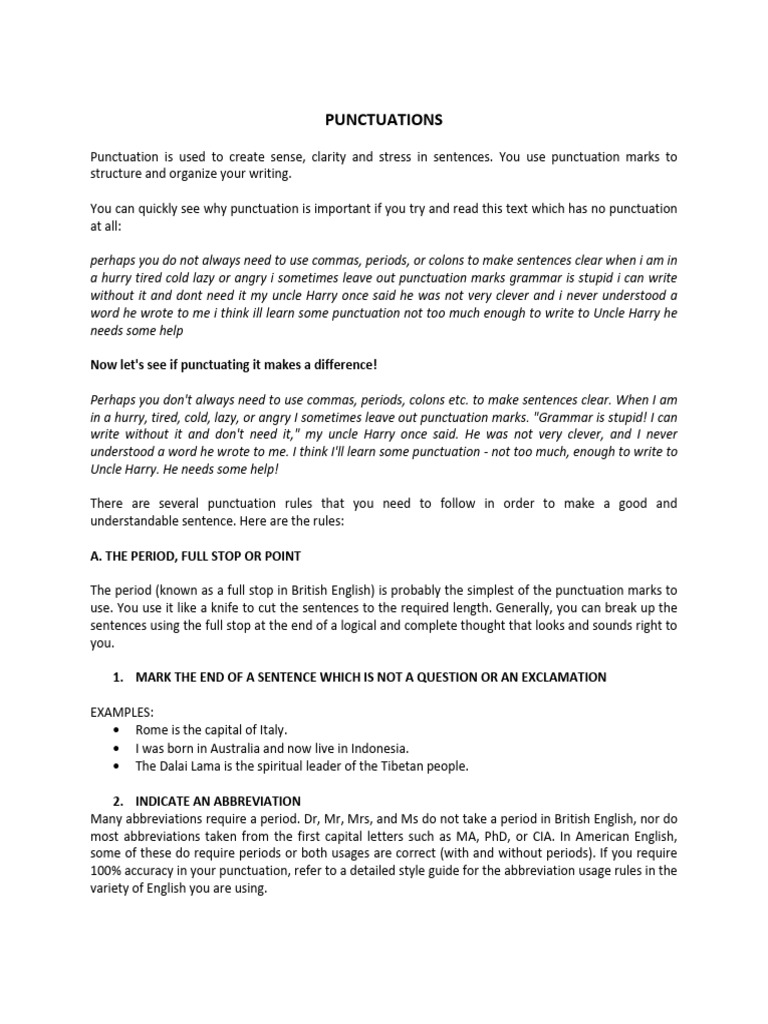 Punctuation is used to create sense, clarity and stress in sentences. You use punctuation marks to