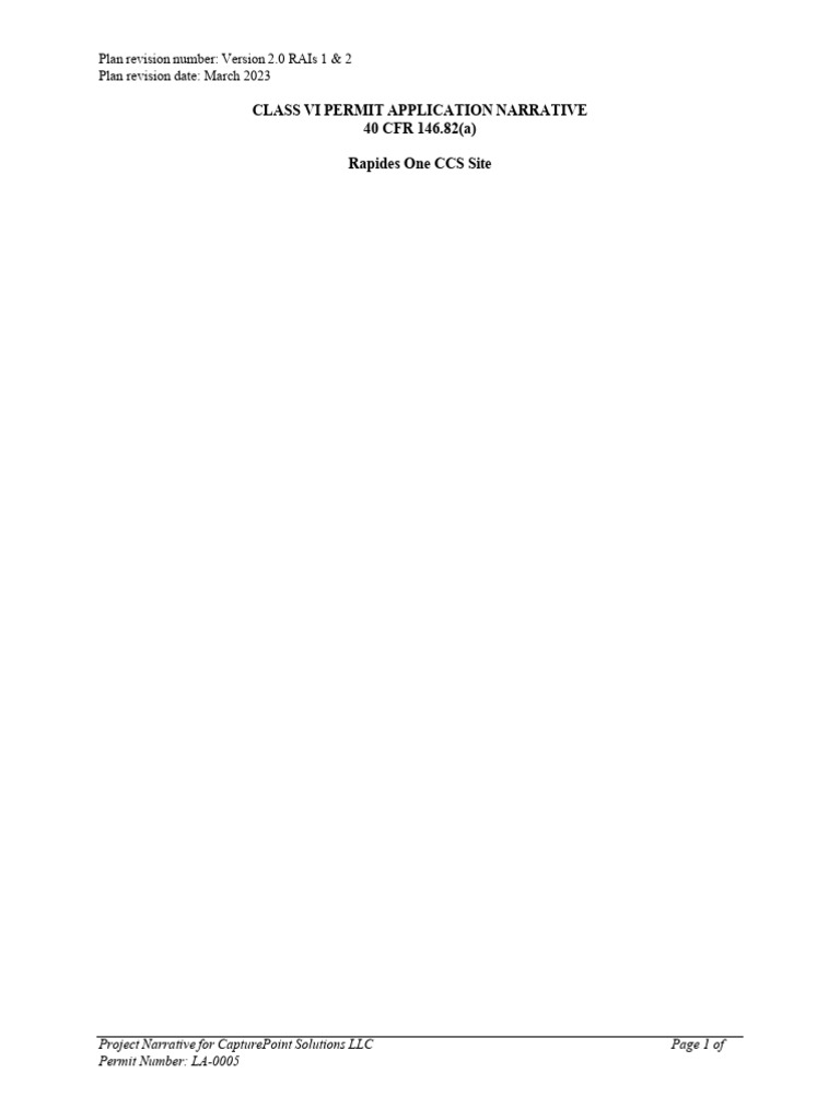 CLASS VI PERMIT APPLICATION NARRATIVE 40 CFR 146.82(a) ............................................................. 1