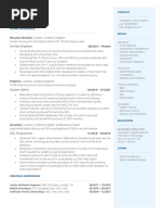 Sales Engineer, ABC Company, London, UK 06/2017 – 10/2018