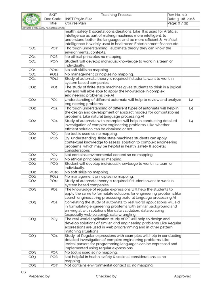 Logo SKIT Teaching Process Rev No.: 1.