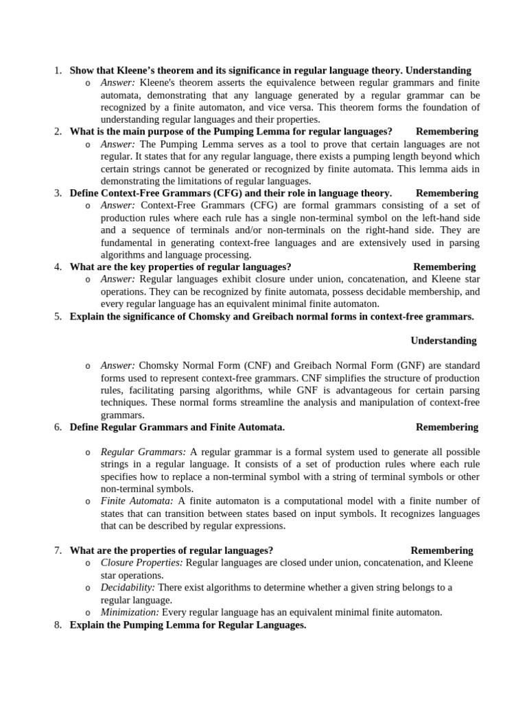 o Answer: The Pumping Lemma serves as a tool to prove that certain languages are not