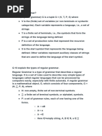 o Regular Grammars: A regular grammar is a formal system used to generate all possible