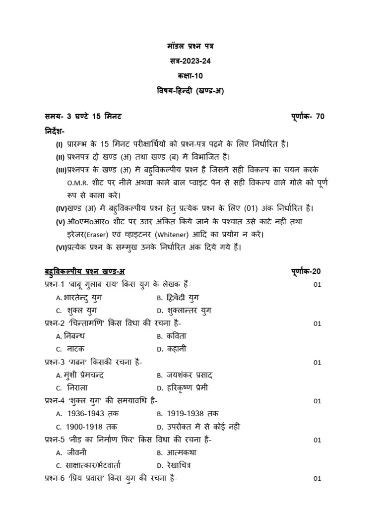 (IV)ख ड (अ) म बहु वक पीय न हे तु येक न के लए (01) अंक नधा रत है ।