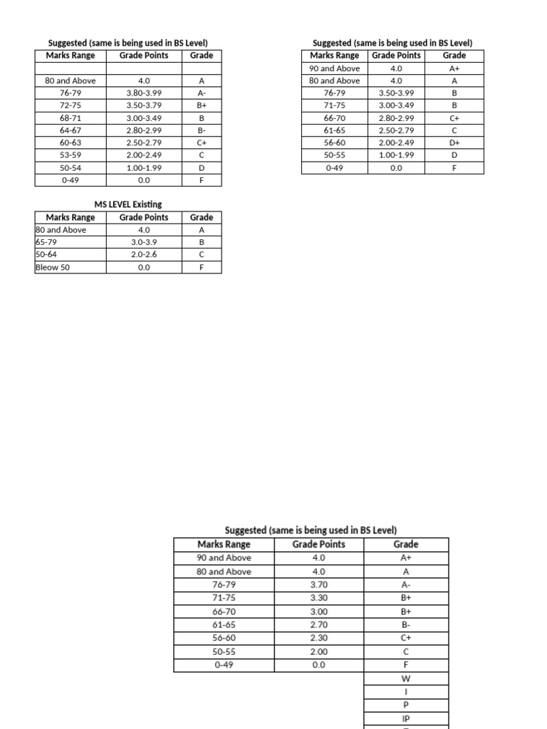 Marks Range Grade Points Grade Marks Range Grade Points Grade
