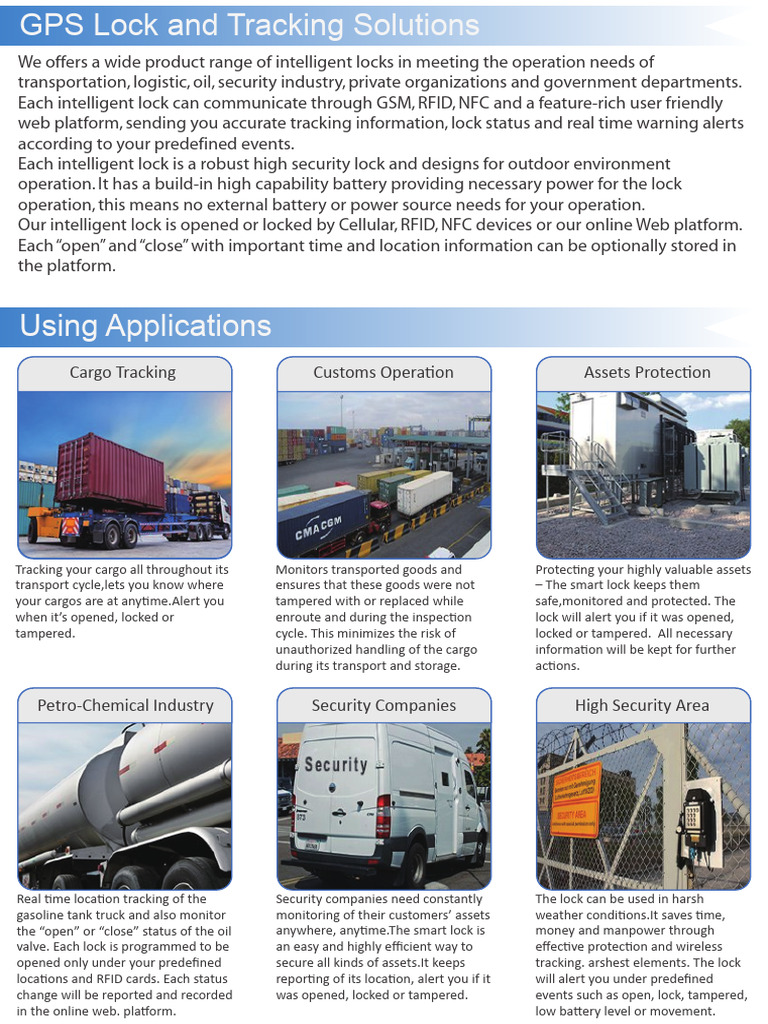 Real time location tracking of the Security companies need constantly The lock can be used in harsh