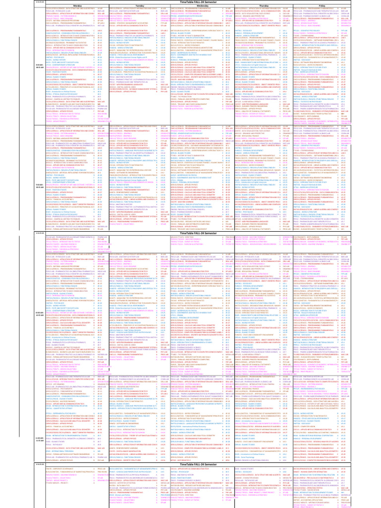 HUM231/HMT102 - COMMUNICATION SKILLS/ENGLISH-II C LR-10 CMC111/SEN131 - PROGRAMMING FUNDAMENTALS A LAB-3 GER141- ISLAMIC STUDIES E LR-13 HUM112 - PERSONAL DEVELOPMENT C LR-10 FIL314/ FAD363 - FASHION ILLUSTRATION IV A GP LAB