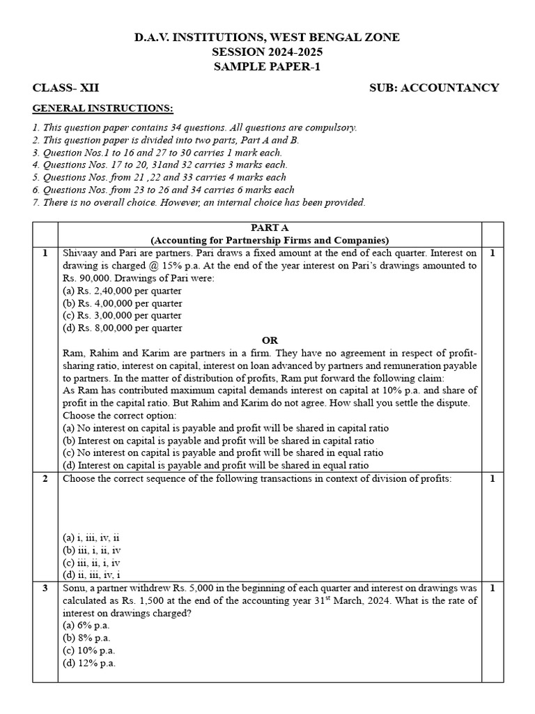 4 Assertion (A): Interest on capital to a partner is payable only out of profits. 1