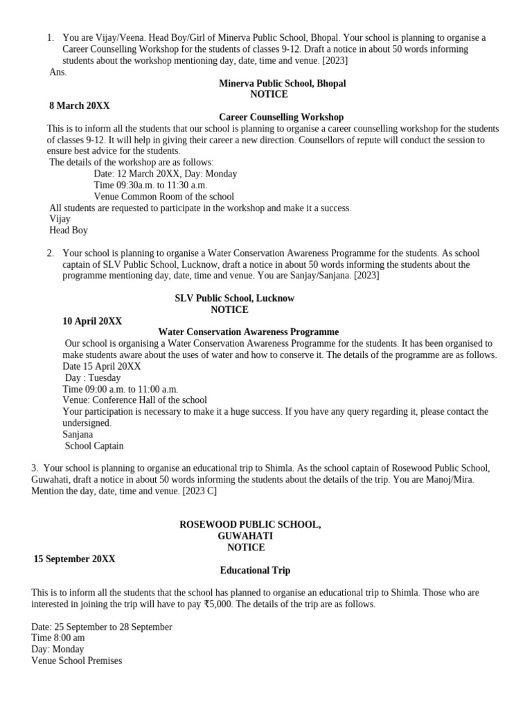 3. Your school is planning to organise an educational trip to Shimla. As the school captain of Rosewood Public School,