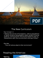 recent archaeological finds are contradicting this theory. a) Fossilized bones have been found in the Yukon, dating approximately 27,000 years old. Upon further investigated this area, dog bones were found dating 30,000 years old. b) Because signs of human tool making, house making, and cave painting are evident in Chile, and date 12,000 years old, we know the ancestors of these people must have crossed the Bering Strait long before. 5. Clovis: The First American Technology a) About 12,000 years ago, more advanced methods of tool making developed. This style, Clovis, is named for the area of its discovery, Clovis, New Mexico. This technology was much more advanced than anything that was used at this time. (1) All the sites where Clovis technology have been found all date to within a period of one thousand years, even though they are spread throughout North America. This implies that the technology spread quickly (1) This also implies that the continent was well populated, as the technology would be easily spread between neighboring peoples. (2) Scientists formulate that Clovis users were hunters that traveled in groups of 30 to 50, and migrated between multiple hunting grounds. II. The Beginning of Regional Cultures Around 15,000 years ago the world's climate underwent a climate change characterized by increasingly warmer temperatures. This melted the glaciers which flooded the Bering Strait and created the rivers that we are familiar with today. These huge and life altering changes created unique climates across the continent. These climates, in turn, helped to shape the cultures and lifestyles of the people that inhabited them. A) Hunting Traditions of the Plains and Forests 1. Due to increasing temperatures and increased hunting, many of the large mammals that once were plentiful across North America began to decline in numbers. a) The hunters of Great Plains concentrated their hunting efforts on buffalo, which lead to the invention of Folsom technology. Folsom technology was an upgrade of Clovis, with smaller and lighter tips that could be thrown a very large distance accurately. b) By 7000 b.c.e Plano technology was developed from Folsom, and because Plano technology was often found with tools for grinding plant matter, it suggested people of the Great Plains had a varied diet. 2. With climate changes, Indian communities became more sophisticated a) Scientists have found evidence that Great Plains hunters stampeded hers of buffalo off cliffs. (1) This would have needed the involvement of multiple groups or communities (2) They also would have had some knowledge of food preservation techniques, because the large amounts of food would have spoiled if they did not. 3. The passing of the Pleistocene and the flooding of the Bering Strait caused a second group of natives to move southward. a) The Nadene people migrated south into Northwest, where they settled 7000 to 4000 years ago. (1) Although they had similar tools and weapons as their neighbors, they had a different culture and language. b) The Inupiat, otherwise known as Eskimos, migrated form Asia along with the Aleuts about 5000 years ago. They traveled by boat, and the Eskimos settled in the Arctic and southern Alaska, while the Aleuts settled the Aleutian islands.
