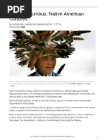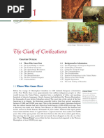 a) They created many densely populated urban cities, but the most important was Cahokia. (1) Housed a massive temple, residential area, and large amounts of farmland. (2) Cahokia was the mold for other Mississippian settlements. b) The Great Serpent Mound was created by the Mississippian. c) Mississippian city-states engaged in warfare, and the need to avoid these conflicts and the large scale of Mississippian cities created a requirement of good leadership in Mississippian society. d) Mississippian society peaked between 1000 c.e. and 1200 c.e. I) The Politics of Warfare and Violence 1. At the end of the thirteenth century a change in climate increased the difficulty of maize farming. a) This decreased the possibility of large communities, and put a strain on those that already existed. b) Some believe that these problems increase tensions in communities which lead to an increase in violence 2. Warfare did exist before this point, however. a) Hunting communities, or nonpermanent settlement for that matter, could not gather enough people to wage a successful war. b) Farming communities often wages war to gain control of more land on which to farm. c) The remains of Cahokia revealed a log stockade, probably used to keep out invaders. IV. North America On the Eve of Colonization A) The Indian Population of America 1. Most historians believe the population of America north of Mexico was between 7 and 10 million, and that Mexican highlands were home to 25 million other Indians. The total number of people in the Western Hemisphere was probably about 60 to 70 million at this point in time. 2. the density of population varied throughout the continent, however. a) The Northwest was very dense, but the Great Plains and Great Basin were not. b) The largest populations were in the Southwest, South, and Northeast B) The Southwest 1. The farmers of the Southwest, the Pimas and Papagos, had to irrigate small fields using water form the Colorado River 2. These farmers lived in rancherias, which were very far apart. a) This kept conflict to a minimum b) Rancherias had group leadership, and often held ceremonies of rain making. 3. The Pueblo people were different, as they had a greater focus on community a) They had a code of conduct that governed its people, and these rules were enforced by the local clans and religious societies of that area. b) They held public ceremonies that were meant to entertain the people of the settlement. 4. Athapascans lived in this area. a) They did not farm, they hunted and gathered. (1) They did overtime adopt farming, although some chose to remain nomads C) The South 1. Because of the ideal climate that was present in the South, Indian peoples flourished. a) They fished farmed, and took advantage of the plentiful resources in this area. 2. Records of these Indian peoples are hard to find because they were quickly killed by