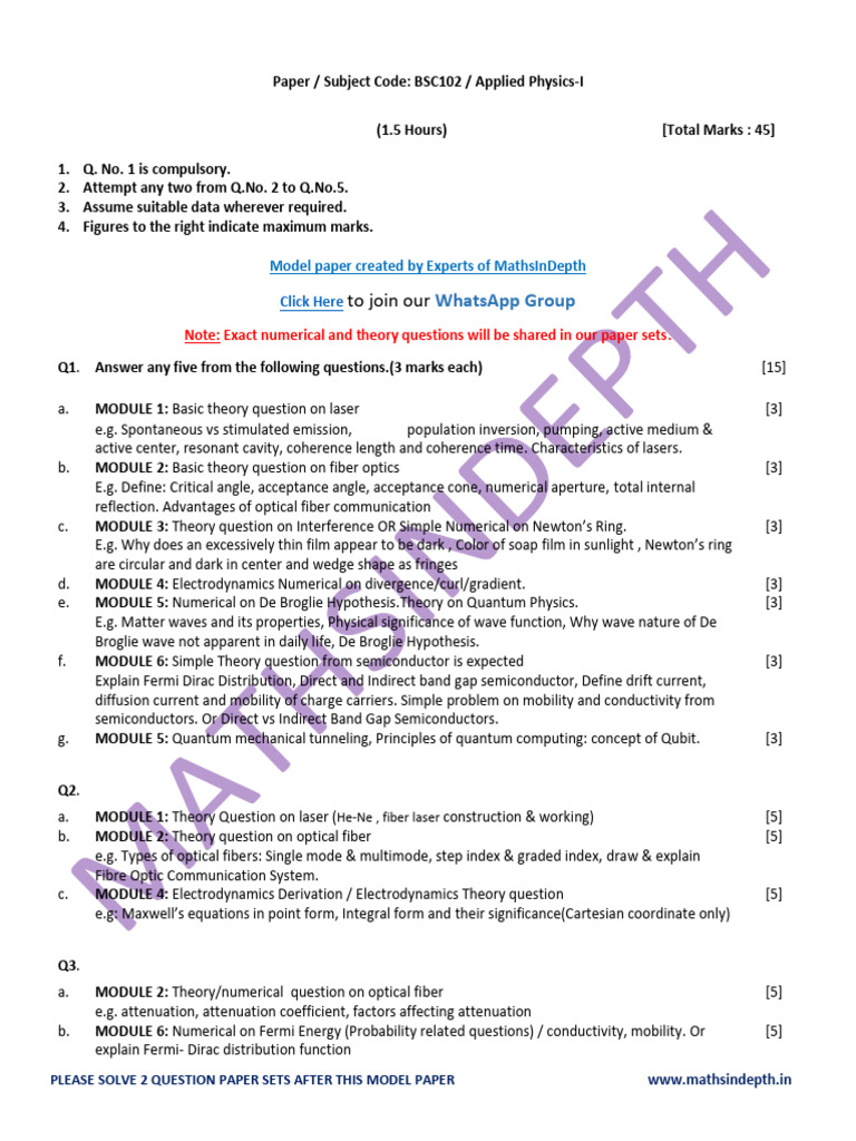 PLEASE SOLVE 2 QUESTION PAPER SETS AFTER THIS MODEL PAPER www.mathsindepth.in