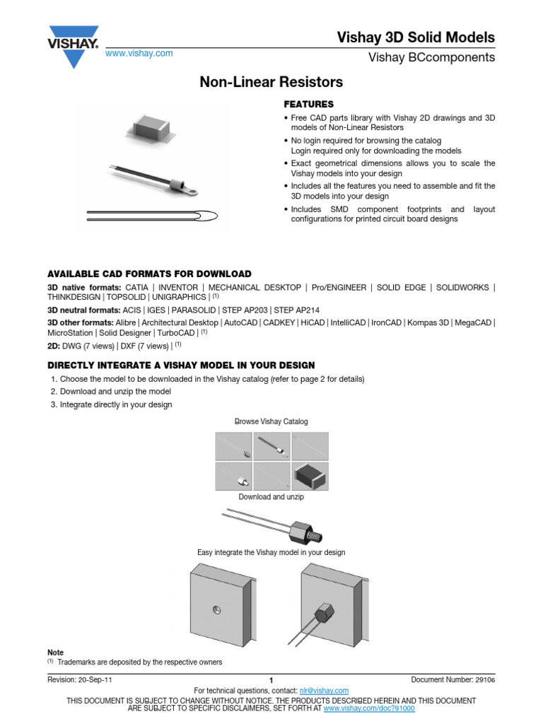 • Free CAD parts library with Vishay 2D drawings and 3D