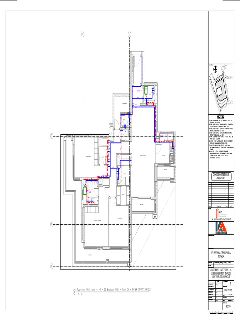 Apartment Unit Types - 10 - (3 Bedroom Unit - Type C) - WATER SUPPLY LAYOUT COORDINATED BY A.S.