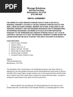 the self-service storage facility. Occupant represents that Occupant owns or has legal possession of the personal property in his or her Space(s) and