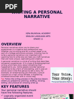 What’s It All About? In a personal narrative, your main purpose is to express yourself. Keep these char-