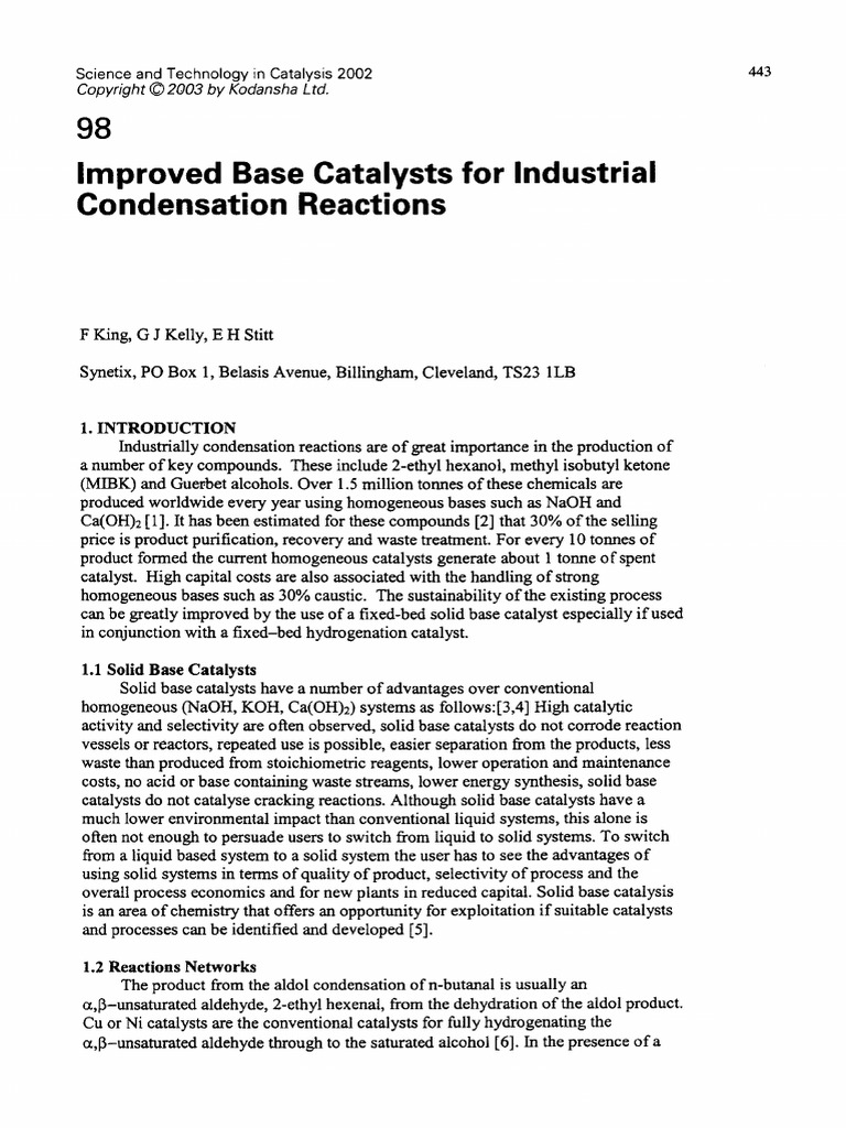 overall process economics and for new plants in reduced capital. Solid base catalysis