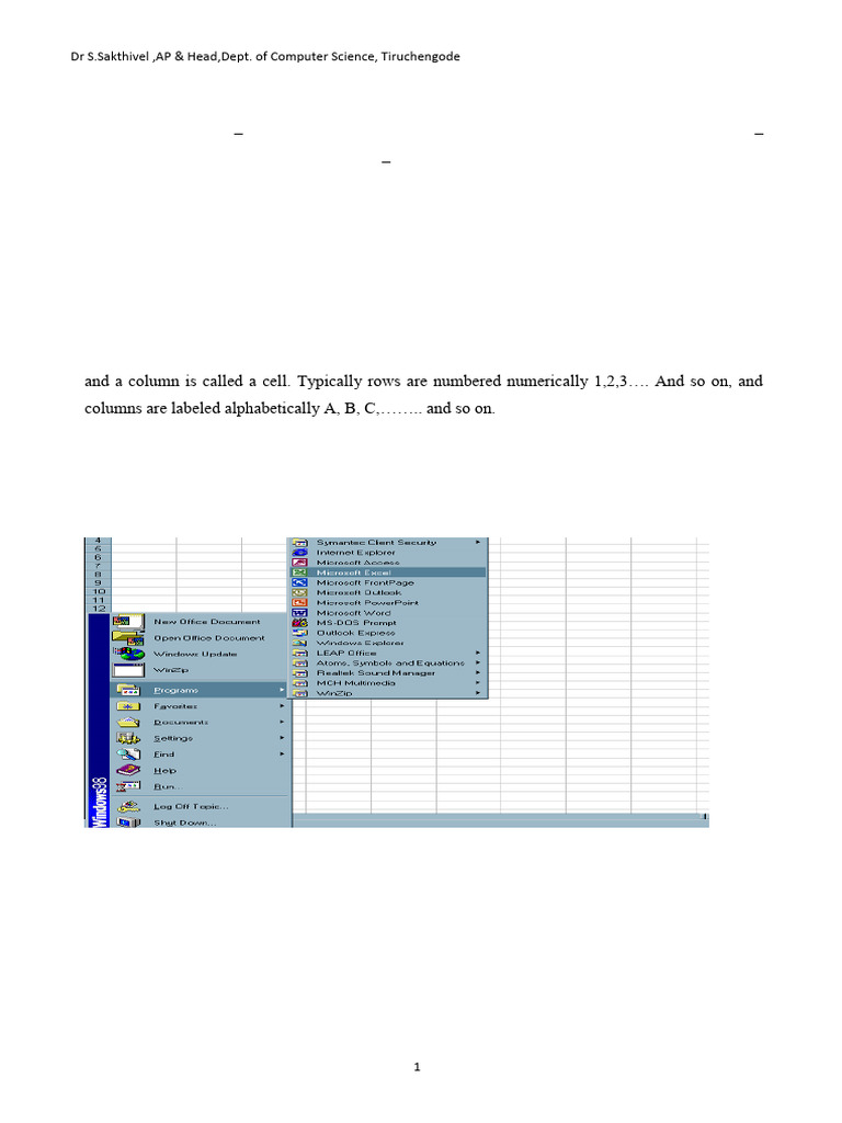 I. EXCEL OPENING,ENTERING TEXT AND DATA