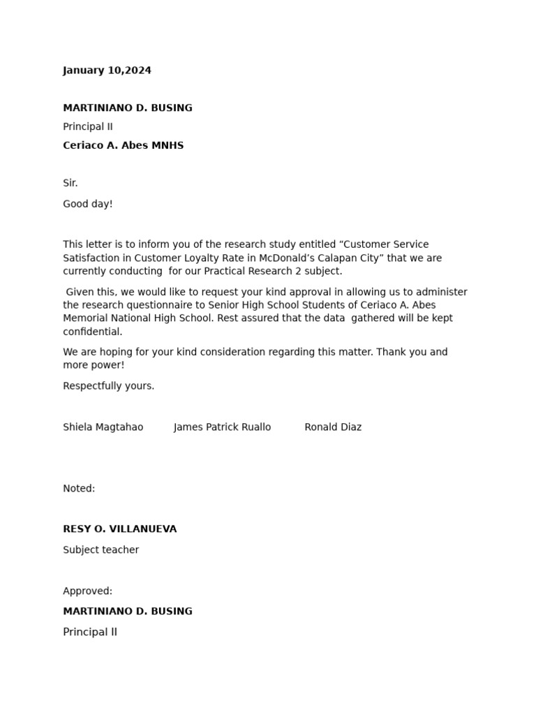 This letter is to inform you of the research study entitled “Customer Service
