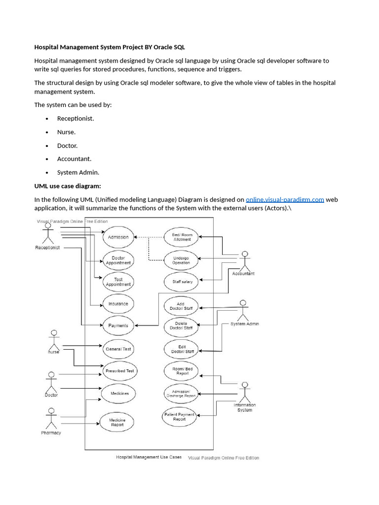 Hospital management system designed by Oracle sql language by using Oracle sql developer software to