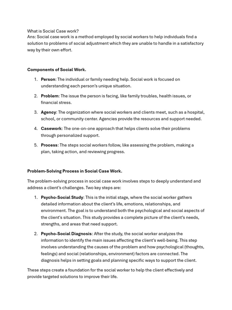 Ans: Social case work is a method employed by social workers to help individuals find a