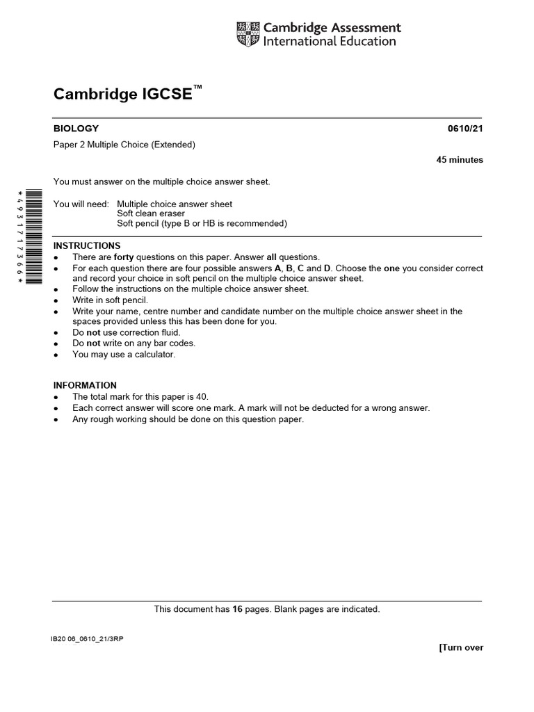 BIOLOGY 0610/21