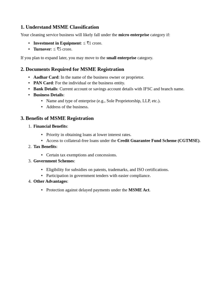 • Access to collateral-free loans under the Credit Guarantee Fund Scheme (CGTMSE).