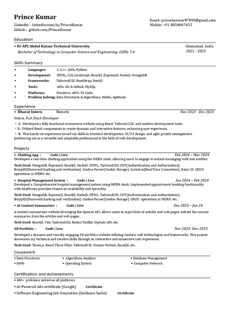 Linkedin : [Link]/in/PrinceKumar Mobile: +91 8054067655