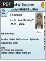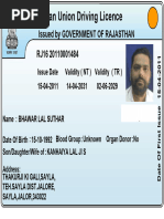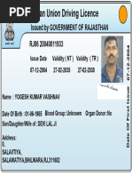 Indian Union Driving Licence RJ