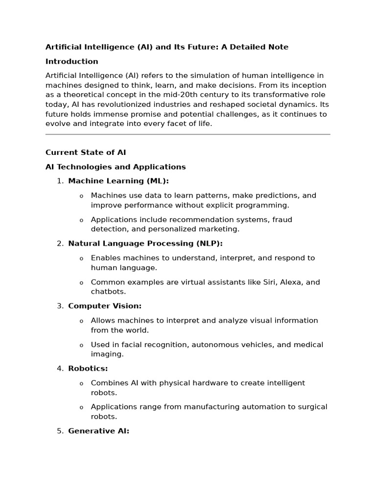 Artificial Intelligence (AI) and Its Future: A Detailed Note